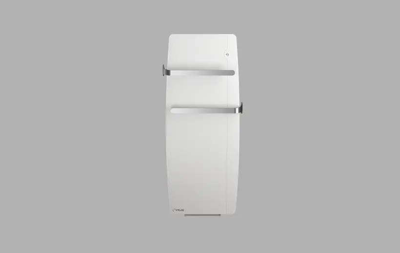 - The smooth, slightly curved surface diffuses 700 W of gentle heat, ideal for the comfort of mediumsized bathrooms. A fully integrated 800 W steel blower ensures instant heating and drying after bathing.
