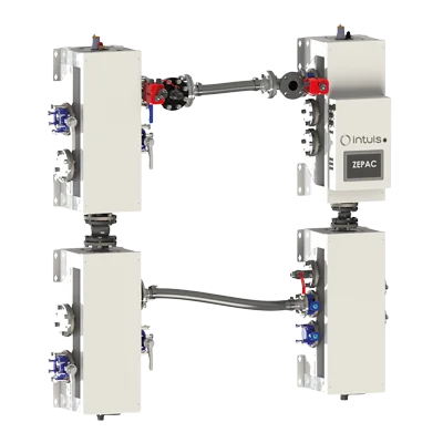 Les pilotes hydrauliques ZéPAC Uni-module et Bi-module sont respectivement équipés d’un et de deux modules de distribution. Ces derniers doivent être systématiquement couplés à deux collecteurs qui sont quant à eux reliés aux pompes à chaleur.