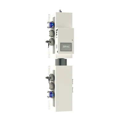 le pilote ZéPAC, composé d’un module de distribution hydraulique (soit uni-module, soit bi-module) équipé de circulateur(s), d’une régulation avec affichage tactile, et d’un ou plusieurs préparateurs eau chaude sanitaire si la configuration s’y prête.