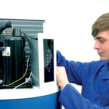 - La liaison frigorifique nécessite des qualifications particulières au moment de l'installation. Plus coûteux, ce chauffe-eau thermodynamique est composé de deux unités : une intérieure et une extérieure. Cette dernière peut localement représenter une gêne du fait de son impact visuel et acoustique.