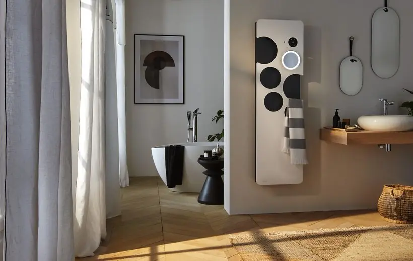 Radiateur sèche-serviettes connecté, chaleur douce avec soufflerie intégrée au design ludique et fonctionnel
